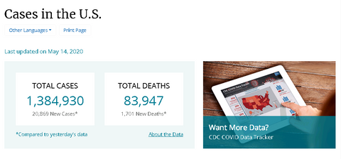 From the data of The Clean Hands campaign by the US Centers for Disease Control and Prevention (CDC), up to May 14, 2020, there are 1,384,930 cases caused by COVID-19 and 20,869 new cases compared to yesterday. It can be seen that the epidemic in the United States is very serious.